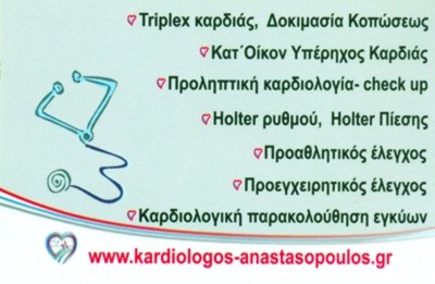 ΣΥΓΧΡΟΝΟ ΚΑΡΔΙΟΛΟΓΙΚΟ ΚΕΝΤΡΟ- ΠΡΟΛΗΠΤΙΚΗ ΚΑΡΔΙΟΛΟΓΙΑ - CHECK UP- TRIPLEX ΚΑΡΔΙΑΣ- ΔΟΚΙΜΑΣΙΑ ΚΟΠΟΣΕΩΣ- HOLTER ΡΥΘΜΟΥ - HOLTER ΠΙΕΣΗΣ- ΠΡΟΑΘΛΗΤΙΚΟΣ ΕΛΕΓΧΟΣ- ΠΡΟΕΓΧΕΙΡΗΤΙΚΟΣ ΕΛΕΓΧΟΣ- ΚΑΡΔΙΟΛΟΓΙΚΗ ΠΑΡΑΚΟΥΛΟΥΘΗΣΗ ΕΓΚΥΩΝ ΔΕΧΕΤΑΙ ΜΕ ΡΑΝΤΕΒΟΥ - ΚΑΤ ΟΙΚΟΝ ΕΠΙΣΚΕΨΕΙΣ