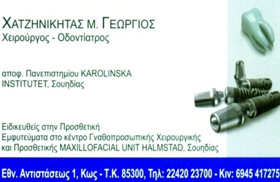 Χατζηνικήτα Χριστίνα: Ειδικός ΟρθοδοντικόςΧατζηνικήτας Γεώργιος: Εμφυτευματολόγος