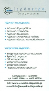 Ακτινολογικό ΕργαστήριοΔέχεται καθημερινά 08:30-14:00και Δευτέρα - Τρίτη - Πέμπτη 18:00-20:30