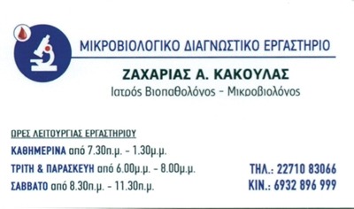 Μικροβιολογικό Διαγνωστικό Ιατρείο Ζαχαρία Α Κακούλα