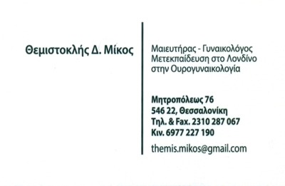 Μετεκπαιδευθείς στο Λονδίνο στην ουγογυναικολογία,Δέχεται απόγευμα με ραντεβού.