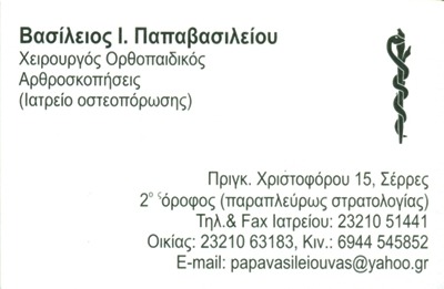 Ωράριο Παπαβασιλείου Βασίλειου: