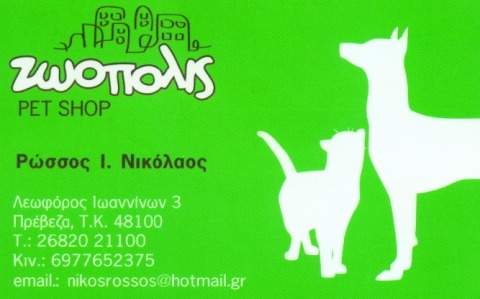 Στο χώρο μας στεγάζεται κτηνιατρικό φαρμακείο, όπου υπάρχουν κλινικές δίαιτες, super premium τροφές των κορυφαίων εταιρειών Purina - Proplan- tonus, royal canin ,hill’s, earthborn όπως επίσης και φθηνές σειρές. Υπάρχει μεγάλη γκάμα από αξεσουάρ & ενυδρεία.