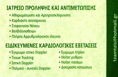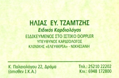 Ειδικός ΚαρδιολόγοςΔέχεται καθημερινά 08:00-13:00 και 17:30-21:00 εκτός Τετάρτης