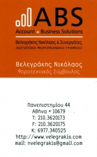 Για περισσότερα από 15 χρόνια το λογιστικό γραφείο Βελεγράκης Νικόλαος & Συνεργάτες προσφέρει υψηλού επιπέδου υπηρεσίες ως φοροτεχνικό λογιστικό γραφείο και σύμβουλος επιχειρήσεων με έμφαση στην ποιότητα και την αποτελεσματικότητα.